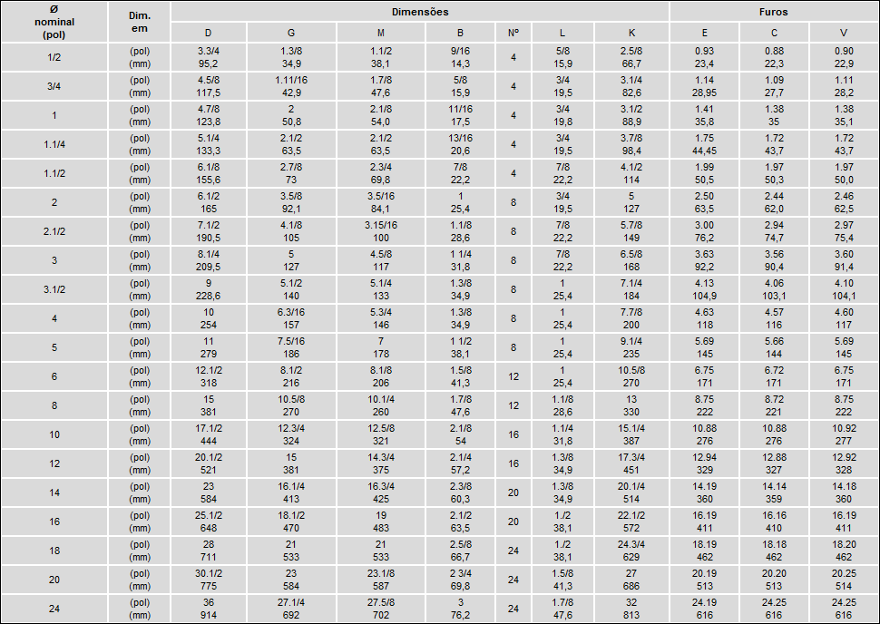 - O ressalto de 1/16″ já está incluído na espessura e na altura do Flange.
